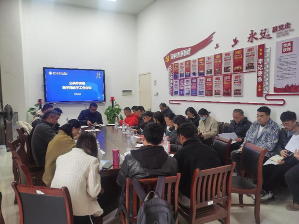 为贯彻落实学校管理质量年有关要求,做好2022-2023年第二学期学生体育课教学相关工作,2月23日,公共体育部召开新学期教学工作会议暨“‘阳康’后的体育课”学期初专项教研活动。会议由文化旅游学院副院长彭晓倩主持,副院长黄志国及公共体育部全体教师参会。