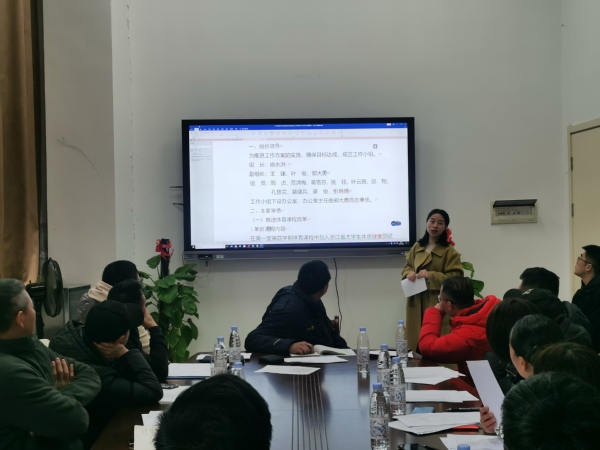 接下来,教师们学习、讨论了《衢州职业技术学院关于全面提升学生体质健康水平的实施方案》以及新学期校园跑活动的分工、规则和考核机制。彭晓倩指出,新学期公体教学要以安全第一为指导方针,对学生因材施教、分层教学,循序渐进推进教学计划,实现学生体质健康水平稳重有进,促进学生全面发展。黄志国强调,在新学期要加强教学业绩考核,实现网络课程全覆盖,同时要严控“手机进课堂”,切实提升课堂教学质量。本次会议为进一步明确新学期公共体育教学计划、提升体育育人水平做好了准备。