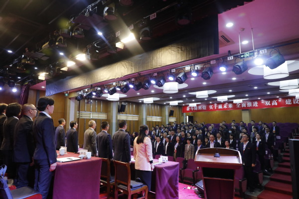 在庄严的《国际歌》中,第五届教职工暨工会会员代表大会第一次会议胜利闭幕。