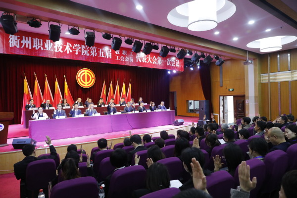 会议选举产生第五届工会主席(教代会执委会主任)、常务副主席(教代会执委会副主任)、工会经费审查委员会主任,通过了《衢州职业技术学院第五轮岗位设置与聘用实施办法(草案)》、《衢州职业技术学院专业技术职务评聘实施办法(修订)(草案)》、专门工作委员会人员名单、大会决议(草案)。在之前召开的第二次全体会议上,选举产生了新一届教代会执委会及工会委员会、经费审查委员会委员。