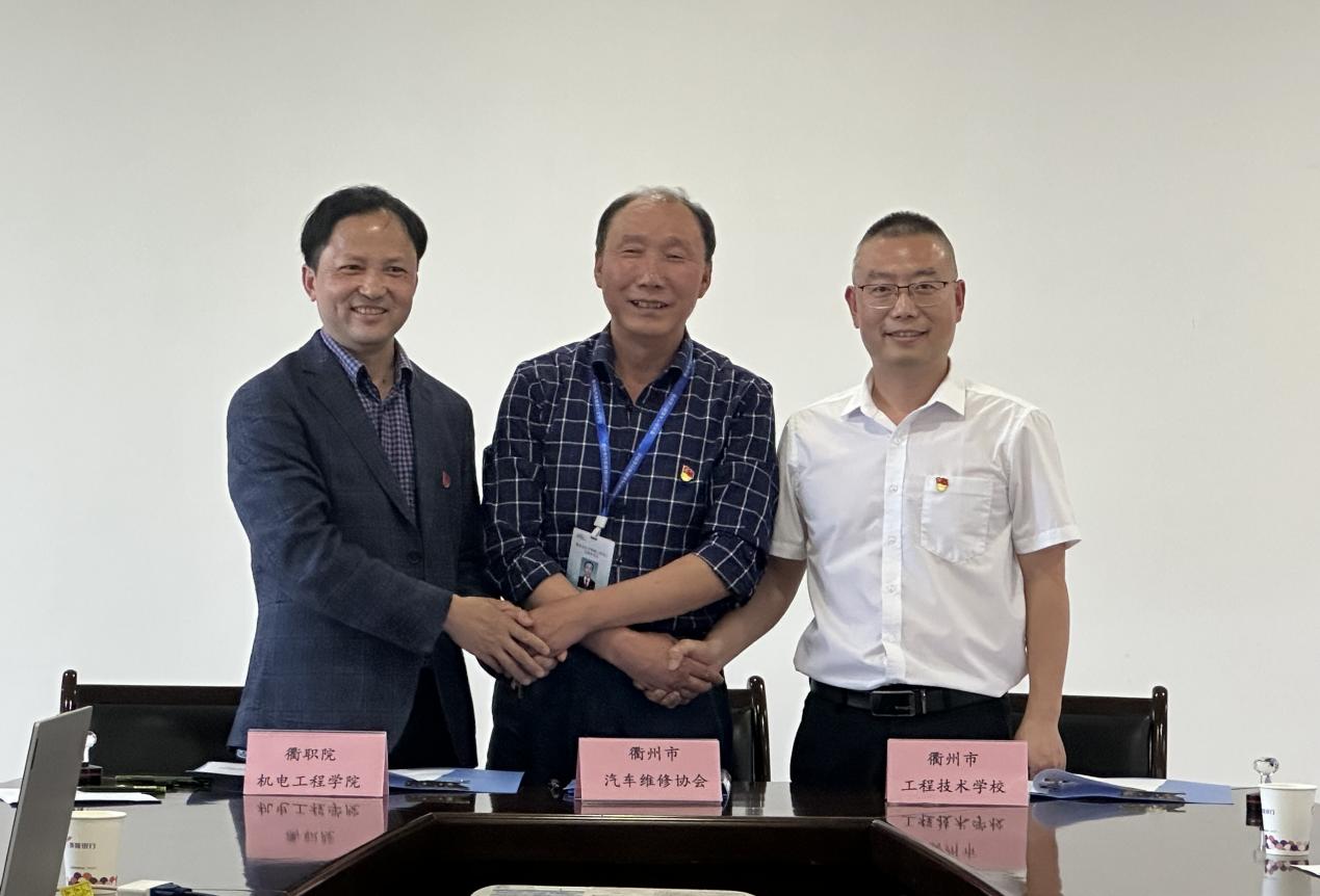 为深入学习贯彻党的二十大精神,进一步深化校企合作,推进校企党建工作融合共进,促进区域中高职一体化人才培养合作和产教深度融合,提升汽车技术服务型人才培养质量。2023年4月19日下午,中共衢州职业技术学院机电工程学院第一支部委员会、中共衢州市工程技术学校交通服务学部支部委员会以及中共衢州市汽车维修行业协会支部委员会联合开展“校企党建联合,携手共建共赢”主题党日活动。机电党总支副书记叶云霞,衢州市工程技术学校党委委员樊绪成,衢州市汽车维修行业协会秘书长胡伟民,会长朱文富以及校企三方党员共同参加此次联合主题党日活动。会议由机电第一党支部书记余富忠主持。