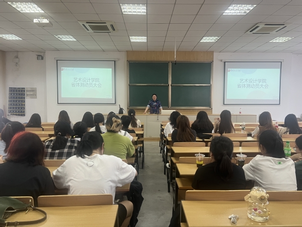 按照浙江省高校学生体质健康状况抽测通报制度的要求,2023年继续对省内本科、高职高专院校学生体质健康状况进行全省统一抽测,艺术设计学院2021级女学生在抽测范围内。为了激励同学们积极参与体育锻炼,在省体测中取得更好成绩,4月17日,艺术设计学院召开省体测动员大会,出席人员为艺术设计学院党总支副书记范洪梅,辅导员占小倩以及艺术设计学院全体2021级女生。