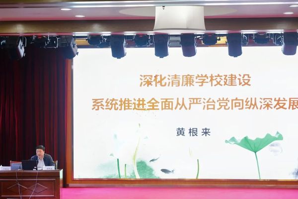 黄根来作题为《迭代升级清廉学校建设,系统推进高校全面从严治党向纵深发展》的专题报告。报告内容丰富专业,通俗易懂,引用了大量案例,全面系统地为学校加强全面从严治党、清廉学校建设,特别是对师德师风建设提供了可行性建议。