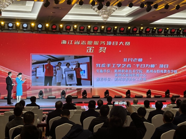 经过“现场路演+专家评审”的精彩比拼,由衢州市委社会工作部推荐,衢州职业技术学院、衢州市特殊教育学校、衢州市新闻传媒中心联合申报的《非凡老师—残疾手工学艺者“千日为师”项目》斩获全省金奖。