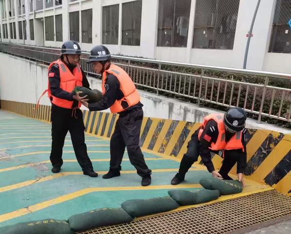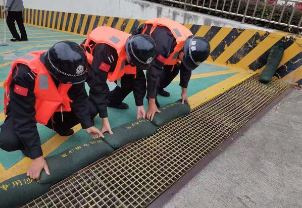 与消防疏散演练同时进行的还有防汛救灾演练和电梯救援演练。