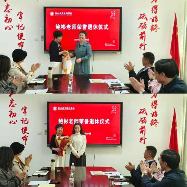 10月29日下午,公共教学部在行政楼801会议室举行鲍彬老师荣誉退休仪式,以温情仪式致敬她数十年的教育坚守。校党委书记徐须实,党委委员、组织部部长周帅,公共教学部负责人及全体教师参加。