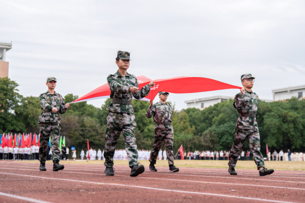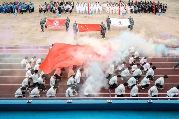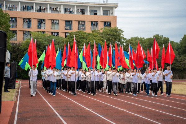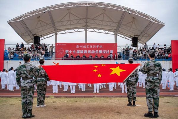 国旗队、校旗队、会旗队、彩旗队、各学院方阵和裁判员方阵迈着铿锵的步伐,意气风发地步入会场。翻腾的龙狮、舒缓的八段锦、齐整的大型团体操接连登场,全面展现了衢职院师生昂扬奋进的青春风采。