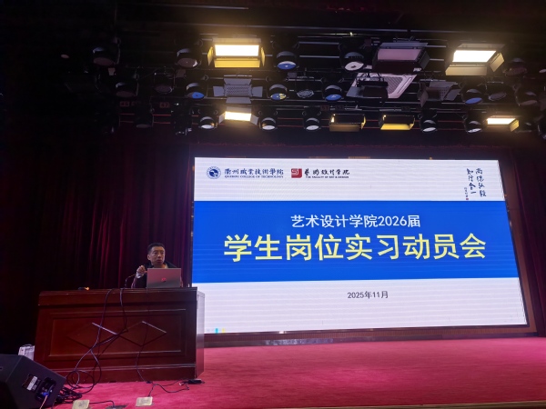 11月3日,艺术设计学院在图书馆一号报告厅组织召开2026届学生岗位实习动员大会。学院领导、各工作室实习指导教师、2026届全体实习生参加了会议。