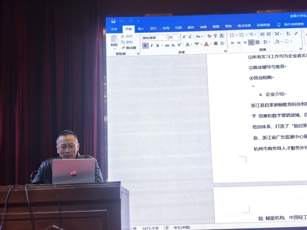 易启莱朗顿教育科技有限公司符老师随后为在场学生作了实习岗位招聘宣讲。他详细介绍了公司业务范围、实习岗位内容及人才培养计划,并围绕实习安排、发展前景等话题与同学展开交流,针对大家关心的问题进行了现场解答,互动气氛积极活跃。