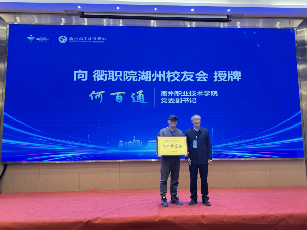 何百通为湖州校友会授牌。