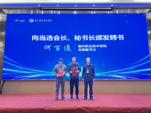 何百通对湖州校友会成立致以热烈祝贺并致辞。他表示,在广大校友鼎力支持下,学校实现跨越式发展,近年来紧扣“创‘双高’、强服务、育人才”主线,深入推进“六个一批”服务地方专项行动,各项事业取得历史性成就,高质量发展前景广阔。他强调,广大校友始终心系母校、以多种方式反哺支持,湖州校友扎根地方、建功立业,既展现衢职风采、发扬衢职精神,也为湖州发展贡献力量。湖州校友会的成立,是母校情的延续、校友情的汇聚,搭建了校友与母校、校友之间情谊相连、发展与共的新桥梁。他希望校友们多联系、多走动,常回老校区重忆青春,到新校区共话发展,以精诚合作助力母校谱写事业发展新篇章。
