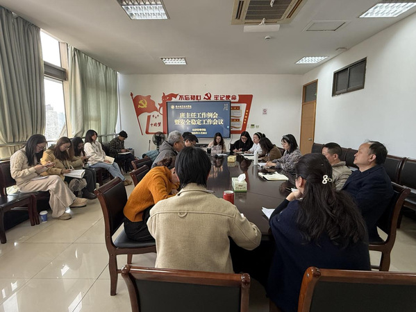 学工办成员围绕心理健康、学生日常管理、医保政策、团学换届及就业推进等各项工作进行了详细布置。党总支副书记徐佩玉通报并分析了近期校园安全稳定形势,并结合《经济管理学院班主任工作提示单》对下一阶段具体工作进行了详细部署。
