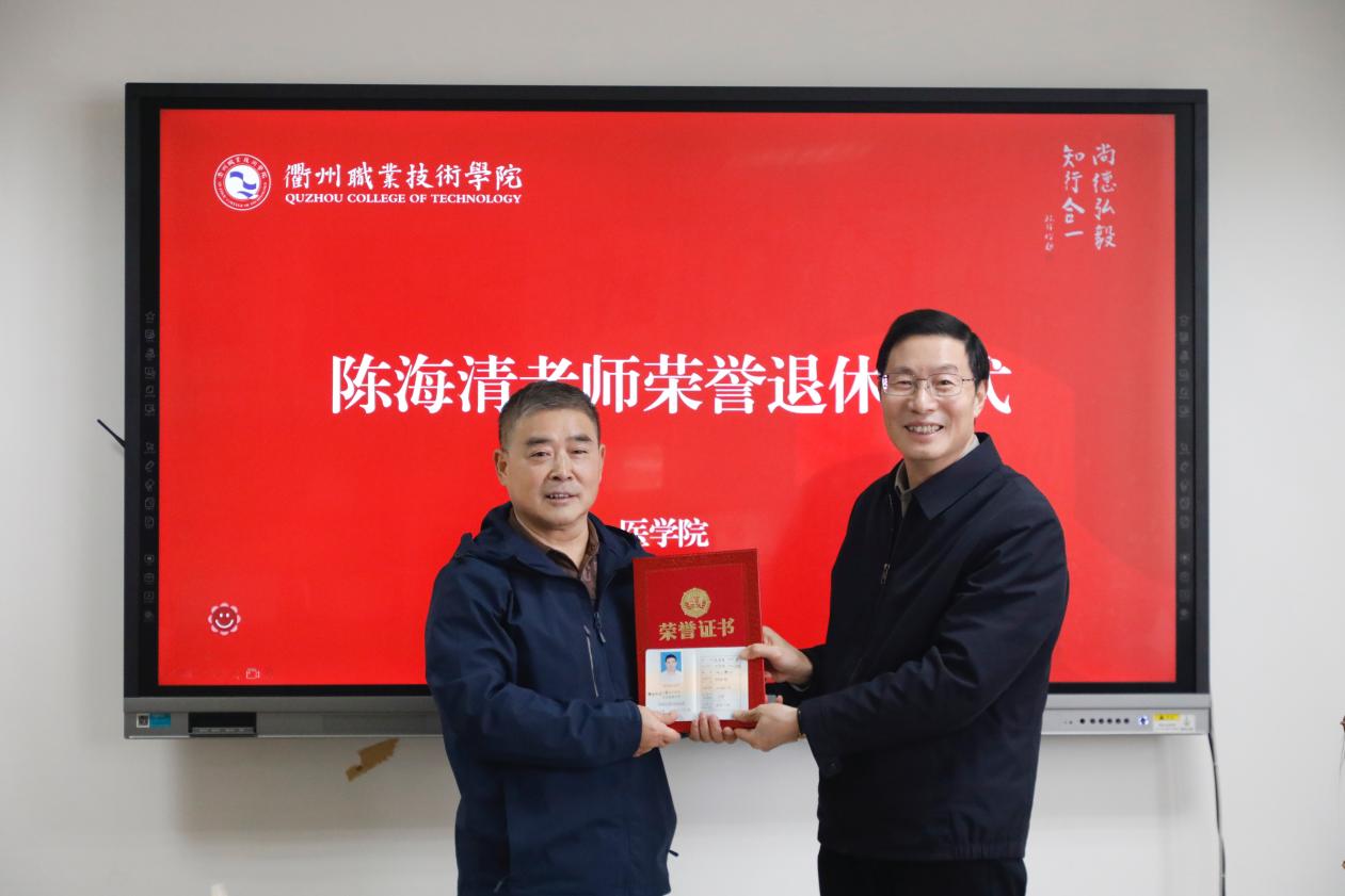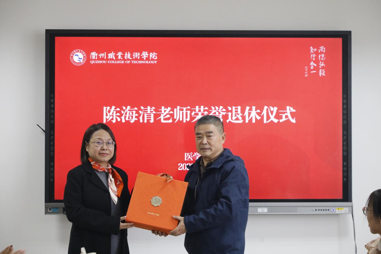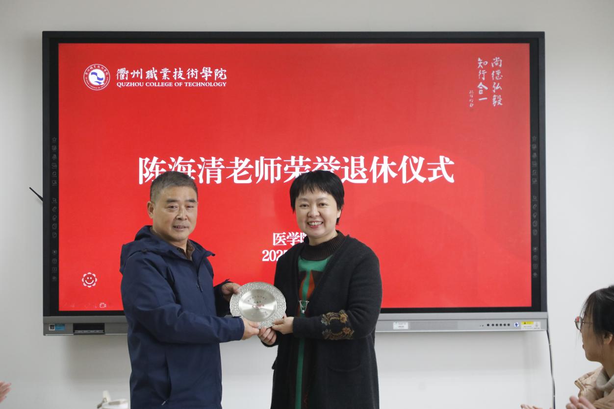 12月12日下午,医学院举行陈海清同志光荣退休仪式,校党委书记徐须实,党委委员、组织部部长周帅,医学院班子成员及部分教师代表参加。