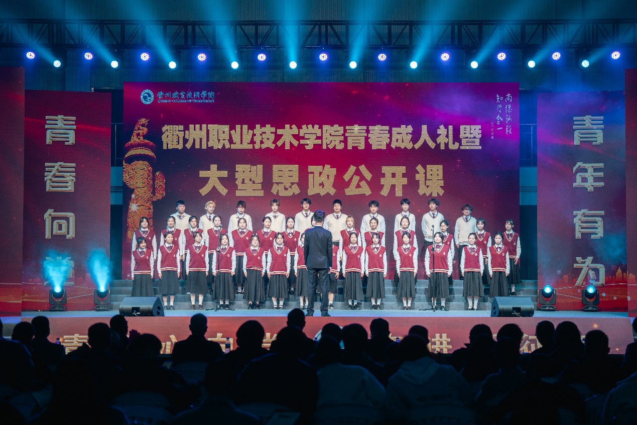 12月30日,学校2025青春成人礼暨大型思政公开课在体育馆隆重举行。校党委书记祝建东,党委副书记、校长吕延文,衢州市委宣传部副部长李莉,校党委副书记何百通,党委委员、纪委书记方焕云,党委委员、副校长余建军、徐浪静、姚水洪,党委委员、宣传部部长孔庆红,党委委员、组织部部长周帅出席,各二级学院(部门)教师代表以及2025级全体同学参加。