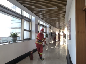 消防演练模拟教学楼8层火情,安保经理启动手动火灾报警器,刺耳的警报声立即响彻整栋大楼。消监控中心接到信号后,迅速通过对讲系统下达指令。巡逻安保人员闻讯而动,引导师生沿疏散通道弯腰低姿、用湿毛巾捂住口鼻有序撤离。与此同时,微型消防站队员穿戴好防护装备,携带灭火器、消防水带赶赴“火场”。到达现场后,队员分工明确:一组利用灭火器对初期火源进行压制,另一组迅速连接室内消火栓,铺展水带,模拟喷射灭火。整个过程中,消监控室人员通过视频监控持续向安全保卫部通报火情发展与人员疏散情况,确保信息畅通、指挥高效。