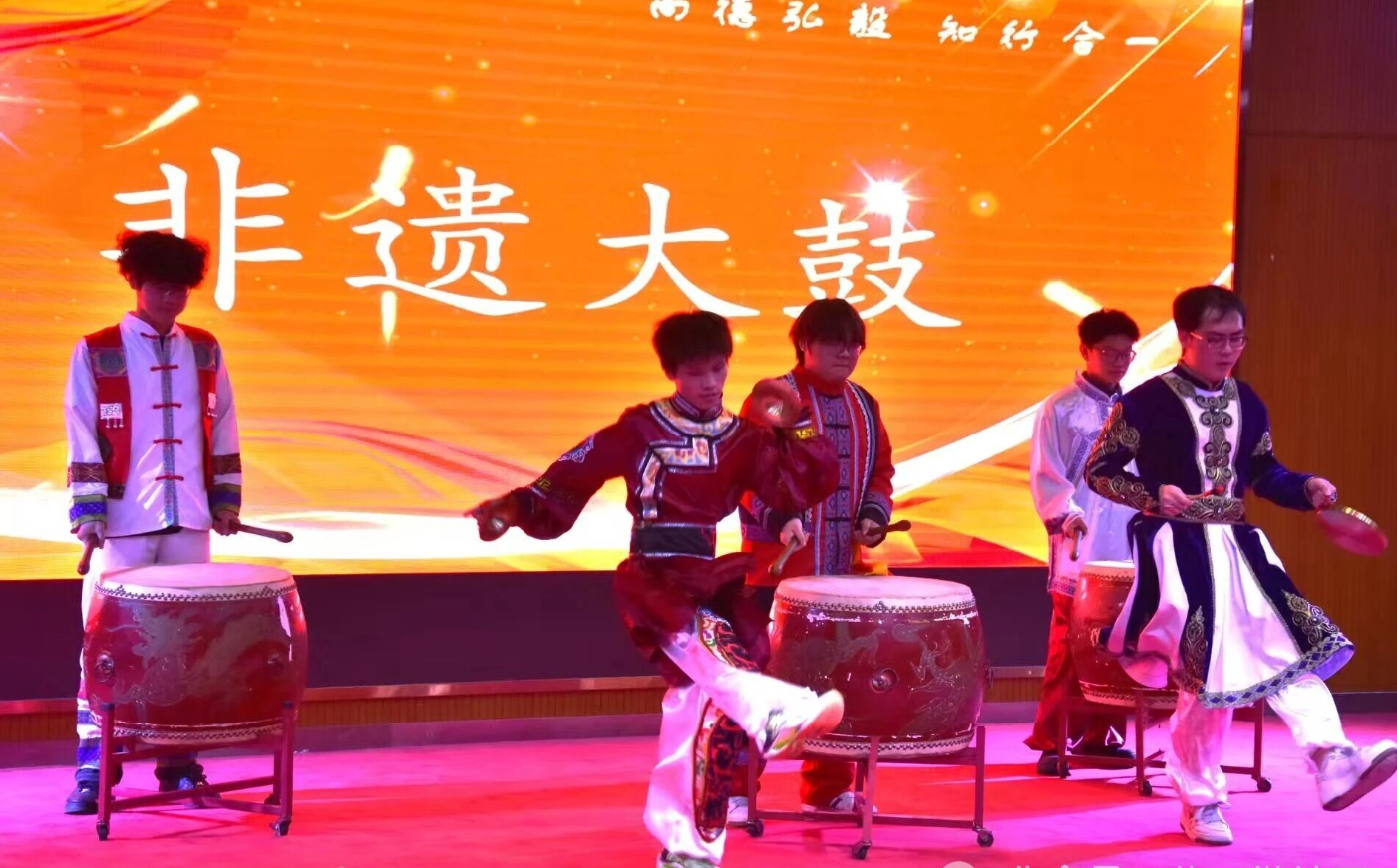 整场晚会节目形式多样、内容贴近校园生活。舞蹈《舞动青春》展现学子朝气,朗诵《纪律的卫士》致敬校园守护者,非遗大鼓气势恢宏,留学生带来的柬埔寨舞蹈促进了文化交流。心理短剧《内心的小怪兽》关注新生心理成长,配音秀《期末的爱恨情仇》以幽默形式引发共鸣,而辅导员老师惊喜出演的节目更是将现场气氛推向高潮。