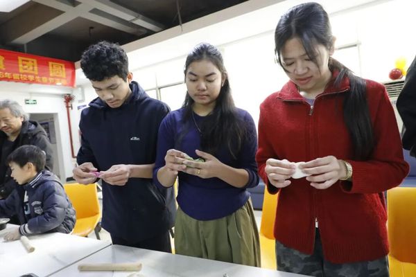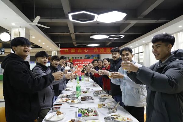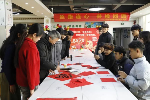 “我的情不移,我的爱不变,月亮代表我的心……”2月11日小年夜,我校食堂里飘出略显生涩却温情满满的中文歌曲,校党委委员、宣传部部长孔庆红,国际交流合作处、信息工程学院、学工部、工会、校书法协会相关人员,同13名来自柬埔寨的留学生们欢聚一堂,写福字、包饺子,话乡愁……“丝路连心 共飨团圆”,异国学子以歌寄情,以饺载意;墨香未干的福字映着笑靥,面皮裹住的是我校师长与同窗递来的滚烫心意。留学生们在浓浓年味里,感受中华传统文化,更触摸到一份来自学校的温情关怀。