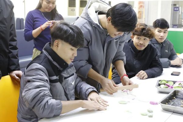 手捏饺子皮、舀馅料、捏花边……在我校师生手把手指导下,擀面杖在掌心转动,面皮在指尖慢慢延展,由厚变薄,馅料微溢,捏出月牙般的褶皱,饺子褶子歪斜却玲珑可爱……留学生们将思乡情与新岁愿一同包进热气腾腾的面食里。