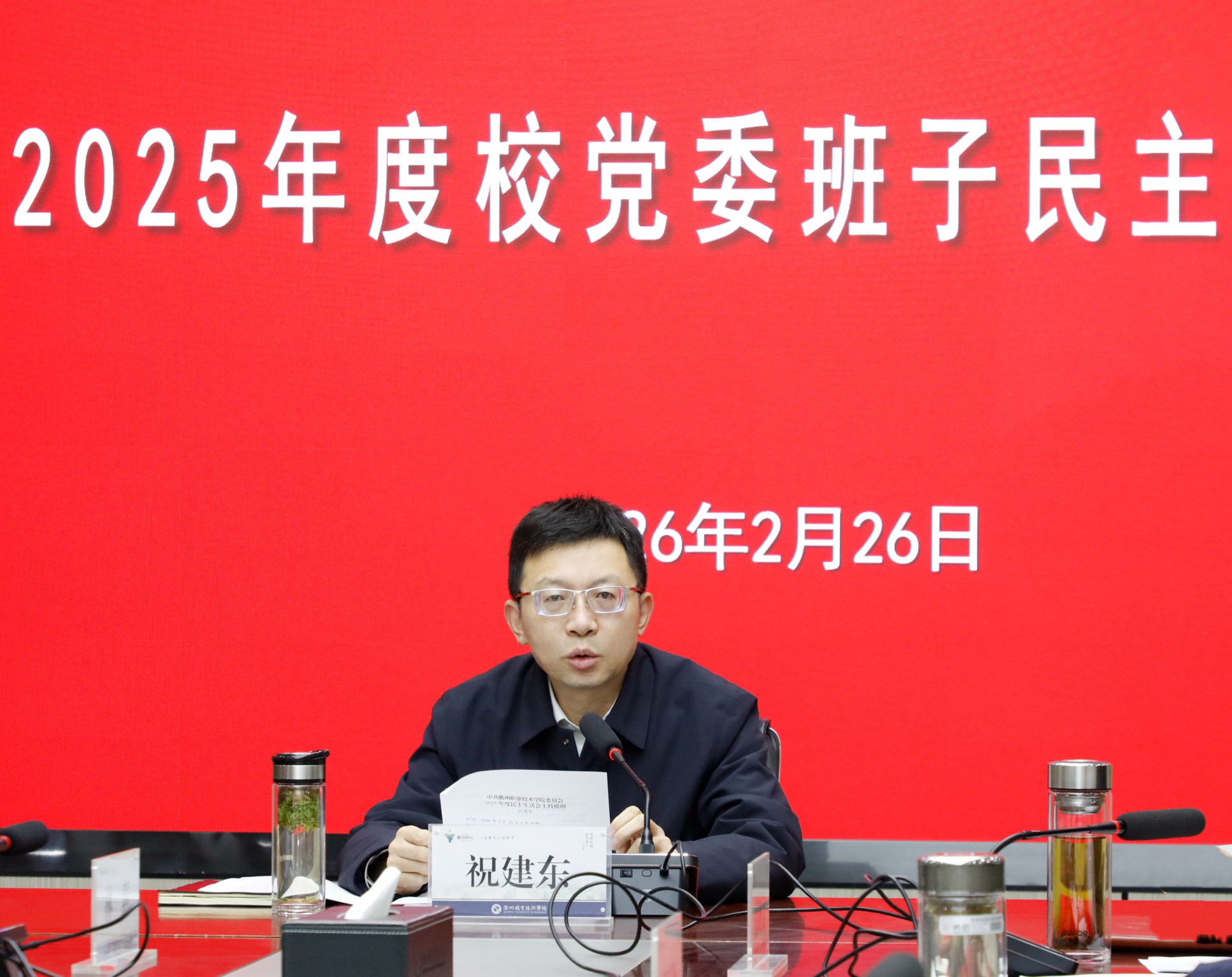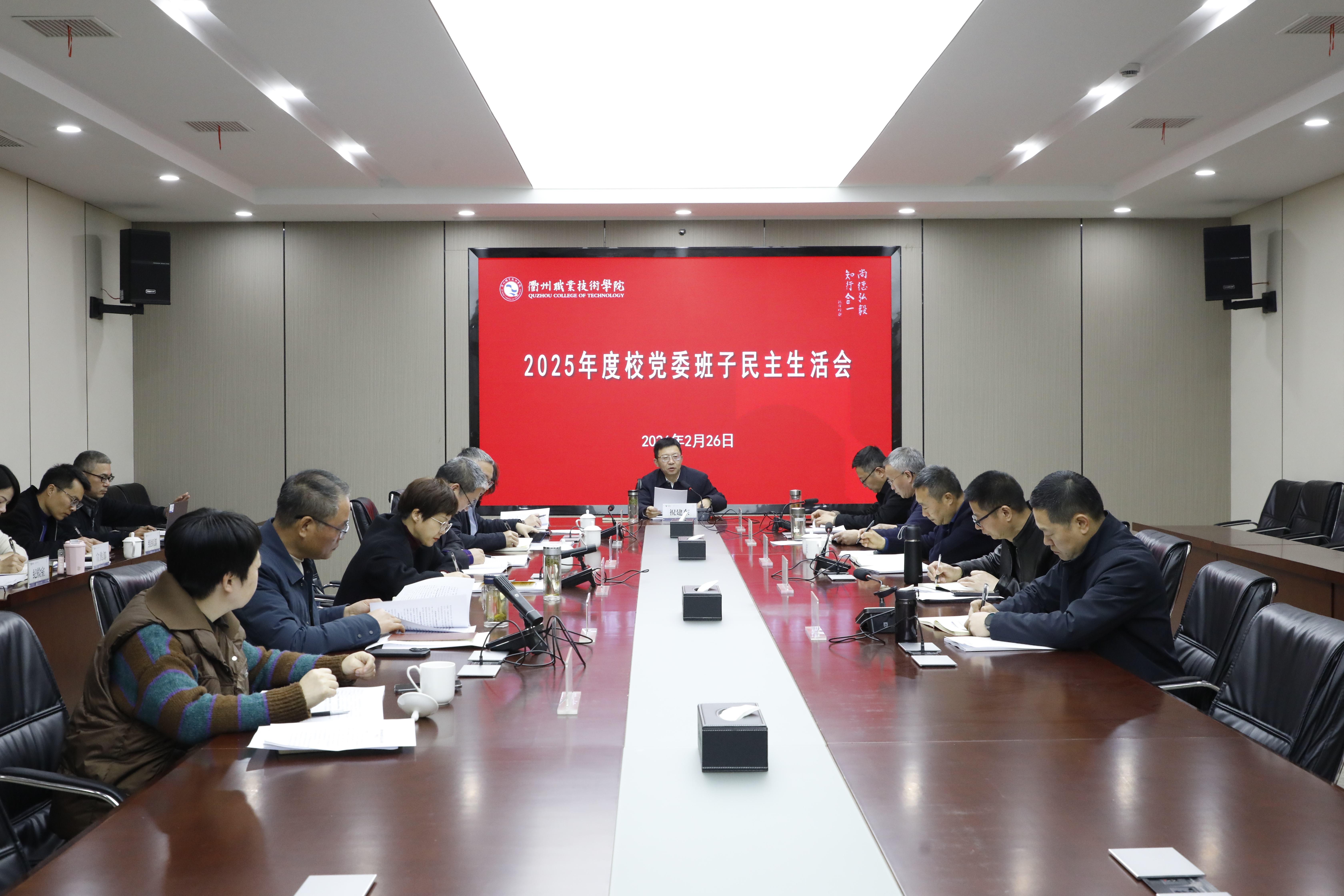 2月26日上午,校党委班子召开2025年度民主生活会。党委书记祝建东主持并讲话,市委第五督导组组长、市委组织部副部长林蕙到会指导,党委班子全体成员参加。