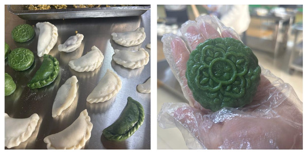 在认真聆听讲解后,老师们纷纷化身心灵手巧的“面点大师”。大家兴致勃勃,捋起袖子,揉面、包馅、搓团,互相交流心得,分享生活趣事。现场欢声笑语不断,其乐融融。不一会儿,一个个色泽翠绿、圆润可爱的青团便摆满了桌子。