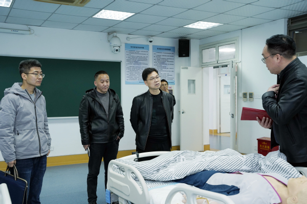 座谈会后,调研组一行实地走访了艺术设计学院实训中心、医学院医护康养与中药实训中心,详细察看实训场地布局、设备配置、实训项目开展等情况。