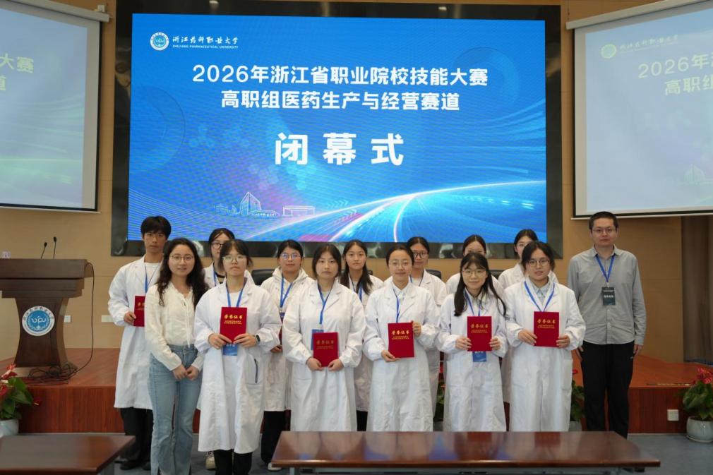 4月8日至4月10日,2026年浙江省职业院校技能大赛高职组医药生产与经营赛道在浙江药科职业大学圆满落幕,共有来自全省各地29支参赛队伍同台竞技。经过激烈角逐,我校医学院中药学专业团队3支参赛队伍凭借扎实的专业功底和出色的现场表现,从众多强劲对手中脱颖而出,最终斩获1金2银的优异成绩,实现了新的突破。