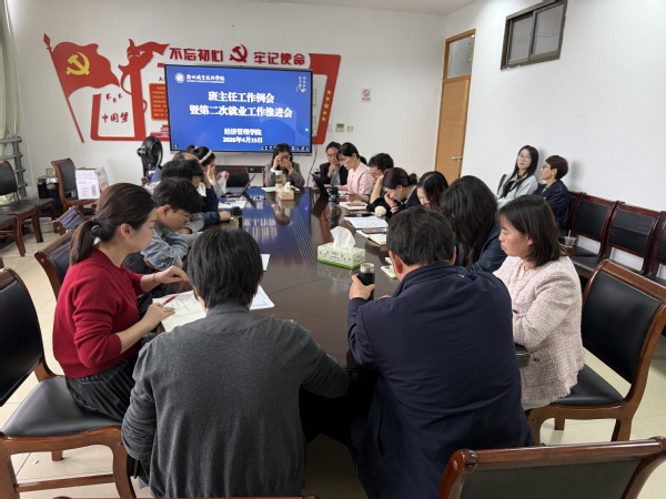 为进一步加强学生日常管理,精准分析安全工作形势,全力推进2026届毕业生就业工作,4月15日中午,经济管理学院召开班主任工作例会暨第二次就业工作推进会。学院班子成员、各专业主任、全体班主任和学工办全体成员参加了会议。