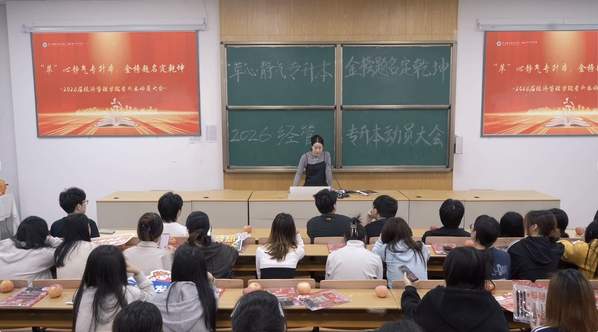 为鼓舞考生士气,帮助同学们以最佳状态迎接考试,4月17日下午,经济管理学院在阶西3-4教室召开2026届专升本考试动员大会。学院党总支书记斯彬彬、学工办主任姚春、毕业班班主任及全体专升本学生参会。