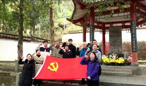 粟裕将军纪念碑前怀念英烈,重温入党誓词。