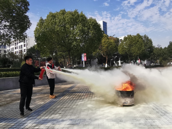 后勤保卫处消防科徐汝祥老师详细讲解和示范了灭火器的正规使用方法、初期火灾扑灭、消防水带连接等,并对发生火灾事故后的基本扑救方法、自防自救措施和逃生自救方法等基本知识作了详细的讲解。