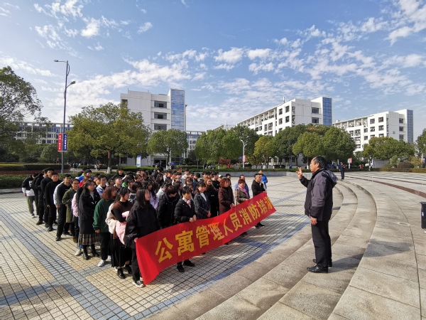 12月4日中午,学生处、后勤保卫处在下沉式广场共同举办学生公寓管理人员消防培训。公寓辅导员、公寓值班员、公寓楼层长等参加了培训。