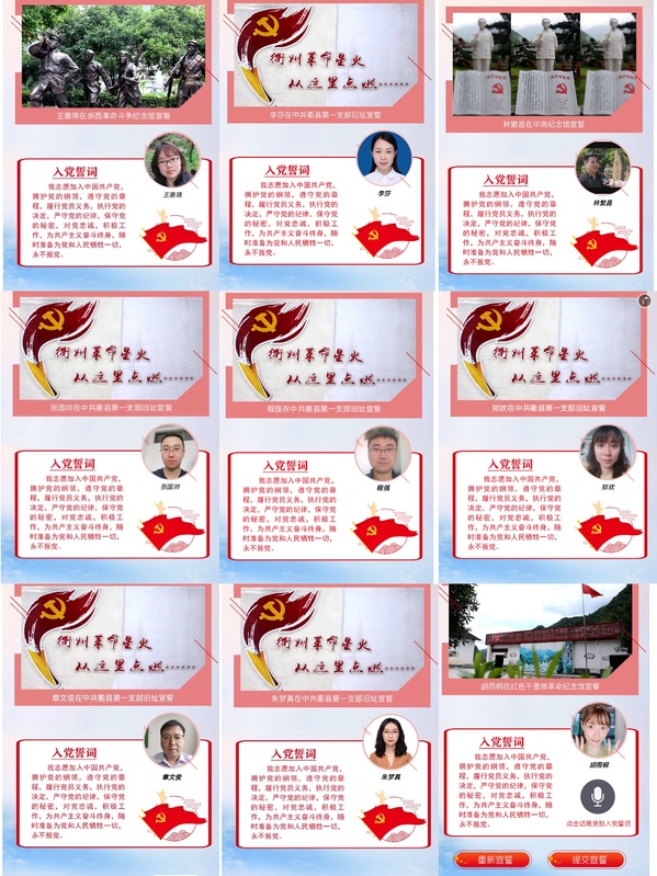 7月1日,党员同志们通过“触摸”我市6县(市、区)有代表性的“红色”纪念馆、旧址等,追寻革命足迹,并选择“海报宣誓”、“语音宣誓”两种方式,展示自己宣誓的身影和声音。
