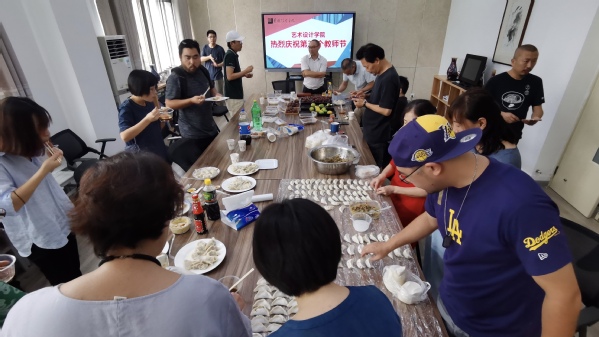 为庆祝第36个教师节,9月10号,艺术设计学院全体教职员工及外聘教师在艺术楼三楼教师发展中心开展教师节包饺子活动。