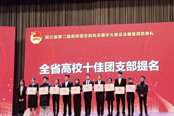 浙江省高校团支部风采展示大赛由共青团浙江省委主办,大赛启动以来,全省共有107所高校积极参赛,共推选出包括高职、本科、研究生团支部在内的927支团支部参与比赛。经过书面评审、理论考试、情景答辩和现场展示,最终产生浙江省高校 十佳团支部和十佳团支部提名,全省仅6个高职团支部获评。