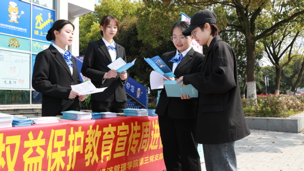 3月15日,我校经济管理学院第三党支部联合中国建设银行衢州分行、校园e银行在校园开展了“315”金融消费维权宣传活动。