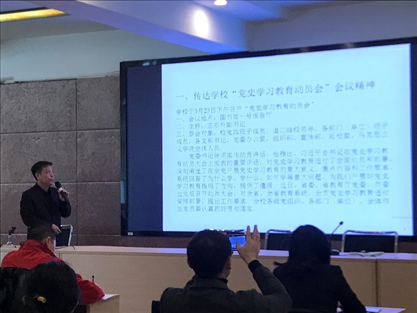 3月26日下午,医学院党总支在医学实训中心多功能厅召开全体党员大会,传达学校“党史学习教育动员大会”精神并对医学院开展学习教育进行部署,会议由党总支书记余文富主持。