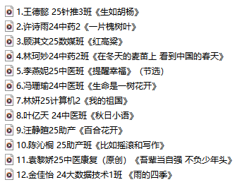 本次活动面向全体在校师生,作品题材丰富多元、内容积极向上。参与者们精心挑选朗读素材,既有《我的祖国》《生如胡杨》《不朽》等红色经典片段,也有现当代文学名家的散文诗歌;既有赞颂家国情怀的励志篇章,也有记录校园生活、抒发读书感悟的原创作品。录制过程中,选手们尽显用心:音频作品背景纯净、吐字清晰,部分搭配轻柔背景音乐烘托意境;视频作品画面稳定、着装整洁,或手持书卷出镜,或聚焦文稿特写,用自然真挚的情感传递文字背后的温度。