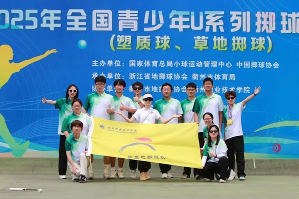 7月9日,2025年全国青少年U系列掷球锦标赛在浙江衢州收官,此次赛事分为两个赛区,其中温州赛区的比赛在浙江工贸职业技术学院举行,汇聚了来自全国41支代表队、208名运动员参赛;衢州赛区的塑质球比赛在衢州职业技术学院举行,草地掷球项目在衢州草地掷球公园举办,由衢州市地掷球协会和衢州职业技术学院协办,吸引了来自全国24支代表队、150余名队员参加。衢州职业技术学院掷球队凭借出色的发挥,获得5金2银的好成绩。