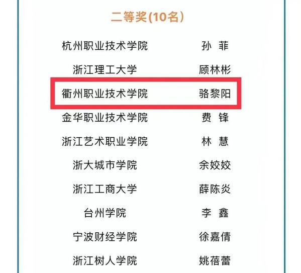 日前,由浙江省教育厅主办的第十届浙江省高校辅导员素质能力大赛在浙江理工大学举行,来自全省105所高校的126名辅导员同台竞技,我校信息工程学院辅导员骆黎阳老师荣获二等奖的好成绩(全省排名13名,前10名为一等奖),这是我校辅导员在此项赛事上的新突破!