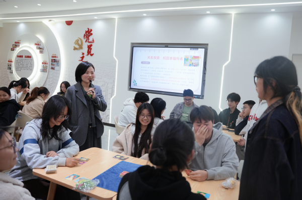 3月18日下午,“心卡时光・解锁大学幸福密码”OH卡团辅活动在党群服务中心率先开启,24名来自不同学院的同学齐聚一堂,在心理中心董佳妮老师的带领下开启一场内心探索之旅。活动伊始,老师为同学们讲解OH卡的使用理念,让大家放下顾虑、轻松参与。从破冰行动、找共同点的小组互动,到故事接龙、幸福溯源的卡牌解读,再到关系探索、幸福传递的心声分享,同学们在趣味互动中快速拉近距离,将抽到的卡牌与生活中的点滴幸福相连,在轮流解读与真诚交流中梳理成长困惑、发掘自身潜能。两小时的团辅活动里,没有标准答案与对错评判,只有温柔的倾听与真诚的分享,同学们在向内探寻中提升了自我认知与情绪调节能力,真正解锁了属于自己的大学幸福密码。