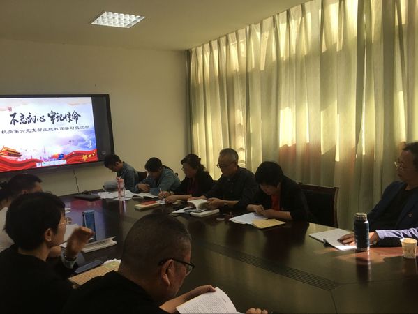 2019年10月16日,机关第六党支部开展了“不忘初心,牢记使命”主题教育集中学习及讨论交流活动,支部全体党员参与了此次学习讨论。会议由支部书记鲍彬主持,学校主题教育巡回督导一组组长吴健出席会议。